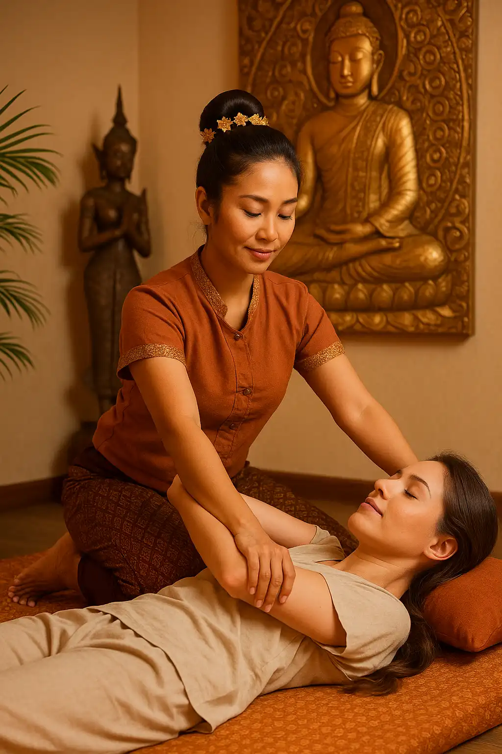 Die Thai-Massage ist weit mehr als eine Wohlfühlbehandlung. Sie ist eine jahrhundertealte Heilkunst, entstanden aus der Verbindung von Ayurveda, chinesischer Medizin und buddhistischer Achtsamkeit. In Thailand nennt man sie „Nuad Phaen Boran“ – die „uralte heilsame Berührung“. Ihr Ziel ist nicht nur Entspannung, sondern das Wiederherstellen des inneren Gleichgewichts zwischen Körper, Geist und Energie.